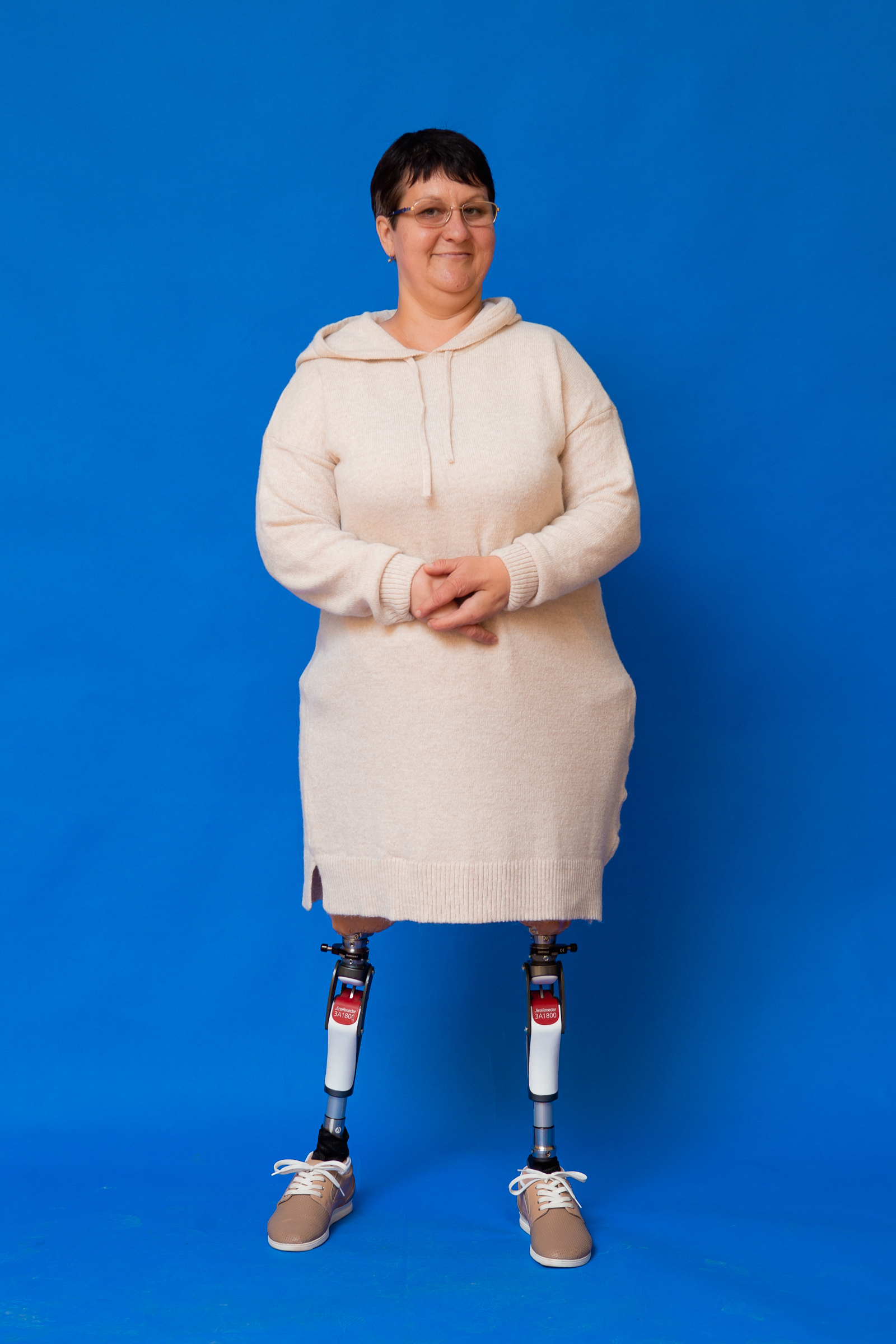 Oksana Mykolaivna – Has congenital deformities of the upper and lower limbs. She has been using prostheses for 40 years. An accountant by education, she now leads an active lifestyle.